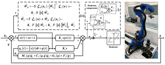The adaptive tracking control scheme is shown in Figure 5 and mainly consisted of two parts. The first part was the ideal controller, and the second part was the dead zone estimation and compensation: