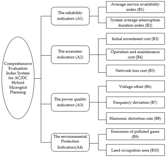 Comprehensive evaluation index system for AC/DC hybrid microgrid planning.