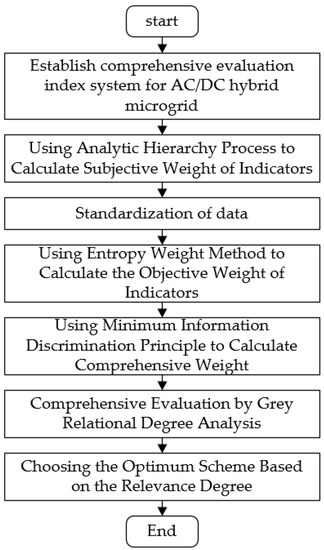The flow chart of the comprehensive evaluation model of AC/DC hybrid microgrid planning based on AHP and entropy weight method is shown in Figure 2.