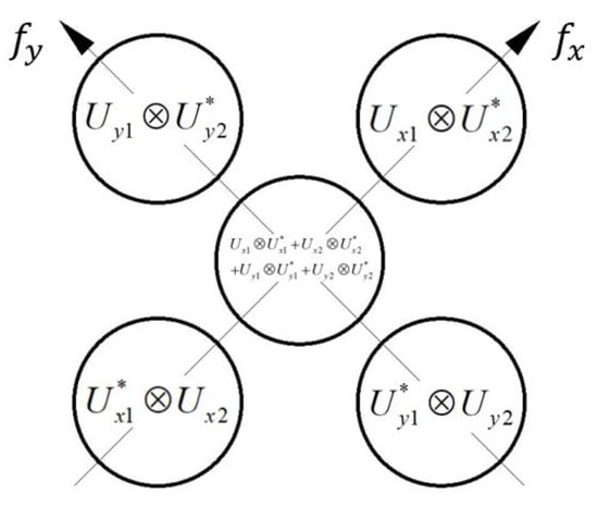 The schematic diagram of the spectrum after Fourier transformation is illustrated in Figure 4. The term contains background information, which is located at the center of the spectrum. The terms and contain the information of in-plane displacement in the x-axis, and they are located at and , respectively. The terms and contain the information of in-plane displacement in the y-axis, and they are located at , and respectively.