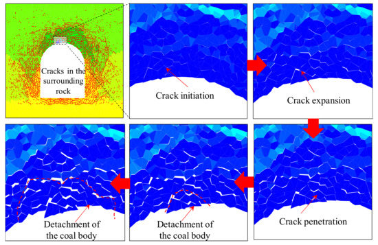 - Bai, Q.-S.; Tu, S.-H.; Zhang, C.; Zhu, D. Discrete element modeling of progressive failure in a wide coal roadway from water-rich roofs. Int. J. Coal Geol. 2016, 167, 215–229. [Google Scholar] [CrossRef]