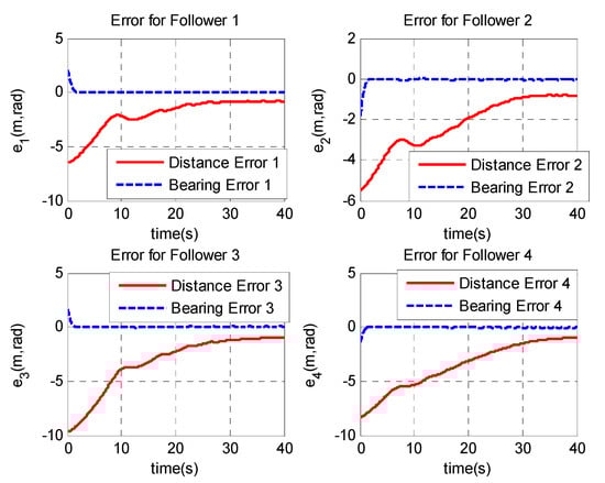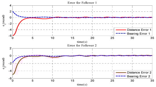 Desired values of relative distance and relative bearing for each follower are as follows: