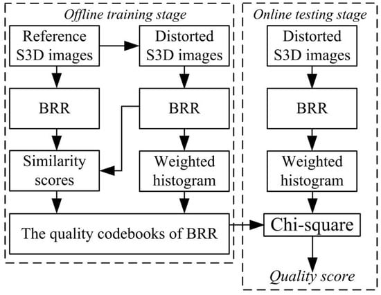 First, in the offline training phase, we learn a quality codebook from the BRRs of the original and distorted S3D images; this codebook will be used to replace human subjective scores to learn blind S3D-IQM methods.