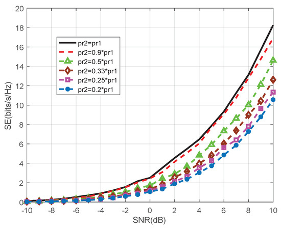 As shown in Formulas (12) and (13), the SINR is in direct proportion to the MMR power (i = 1, 2); the absolute value of channel coefficient and also has the influence on SINR.
