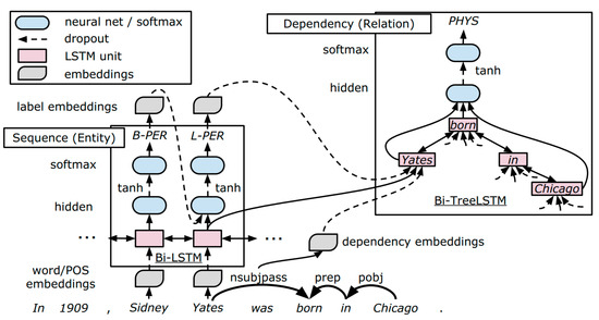 - Miwa, M.; Bansal, M. End-to-end relation extraction using lstms on sequences and tree structures. arXiv 2016, arXiv:1601.00770. Available online: https://arxiv.org/abs/1601.00770 (accessed on 24 July 2019).