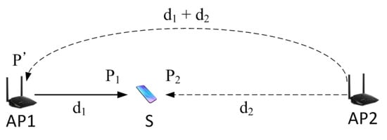 estimates distance from path loss. Suppose the distance between AP1 and node S is