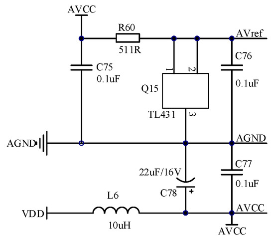 Usually, the AD converter inside the main control chip uses the internal power supply as a reference to calculate the sampling value of the AD channel. When the internal power supply has fluctuations, although the main control can work stably, the AD sampling will be inaccurate, so an additional stable voltage is added as a reference for AD acquisition and conversion. The 2.5 V reference source consisting of TL431 is used here, and its circuit is shown in Figure 2. Figure 3 shows the controller operation indication, the red light indicates the system failure, and the green light indicates that the system is operating normally.