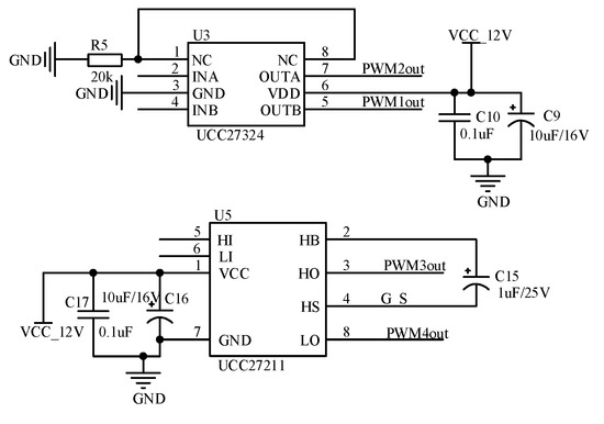 The drive circuit of the power MOS transistor selects UCC27211 and UCC27324 of Texas Instruments, as shown in Figure 8.