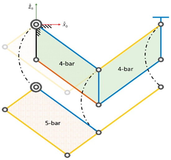There are two methods for static balancing, namely a counterweight or a counter-spring. In previous work [,], a stackable mechanism using counterweights has been used, as shown in Figure 3 was investigated. The stackable mechanism using springs will be newly introduced for static balancing in this section.