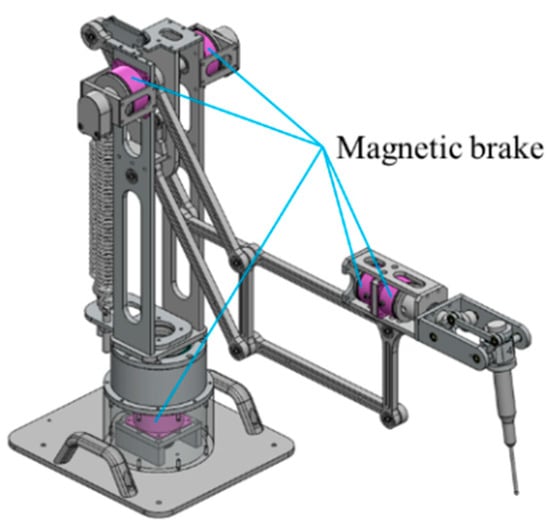 Image guided navigation systems have been popular for microsurgery. There are already many commercial products and navigation software packages for research and clinical applications. There are also many surgical procedures that use the technology. Current surgical navigation systems provide an operator with the positional data of the organs and the surgical tool inside the human body, but such information cannot prevent mistakes in operation. The otologic surgical robot using the proposed stackable mechanism employs five magnetic brakes in order to prevent mistakes. The magnetic brakes are operated when the surgical tool reaches the safety margin set by the operator so that any mistakes in surgery can be prevented. Figure 17 shows five magnetic brakes mounted on a revolute joint. Three magnetic brakes act as a brake on the stackable arm, and two magnetic brakes act as a brake on the surgical tool’s revolution.