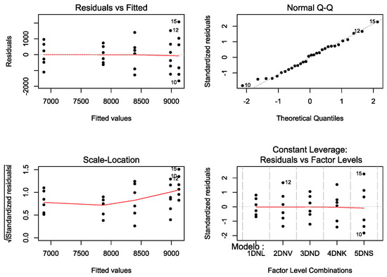 In Figure 5 and Figure 6, no significant outliers that affect the normality assumption were detected. A homogeneous variance is maintained in all die-nozzle models.
