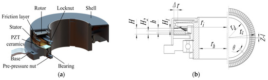 - Ren, W.; Yang, L.; Ma, C.; Li, X.; Zhang, J. Output performance simulation and contact analysis of traveling wave rotary ultrasonic motor based on ADINA. Comput. Struct. 2019, 216, 15–25. [Google Scholar] [CrossRef]
