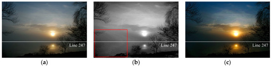 where denotes the enhanced luminance, the input luminance, the luminance gain, the adaptive luminance weight, the emphasized color, the input color, the color gain, and the adaptive color weight. Cho et al., [31] adopted an adaptive limit point, which is calculated according to the cumulative distribution function of the input luminance, to formulate the luminance gain as a nonlinear power function. The adaptive luminance weight is a simple linear function where the input luminance is the independent variable and itself is the dependent variable. The color gain is defined as the multiplication of the input color and the ratio between the enhanced luminance and the input luminance. The adaptive color weight is the piecewise linear function consisting of three line segments, in which the first and the third lines are two thresholds. Readers can refer to Choe et al., [31] for a more detailed description and computational formulae.