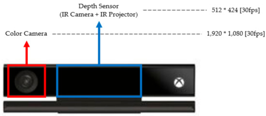 In this paper, we use a video see-through method to construct an augmented reality environment. We used Microsoft Kinect V2 camera for this purpose. Kinect V2 has the advantage of being able to simultaneously capture a color image, depth image, and IR image through multiple cameras, but calibration is required separately for analysis, using sensors of different resolutions [15]. Figure 5 shows the hardware configuration and information for Microsoft Kinect V2.