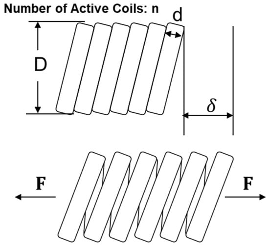 In order to design the SMA coil spring for a wearable robot, the actuator parameters which determine the maximum force as well as displacement should be analyzed. Adjustable parameters for designing conventional spring are described in Figure 2. The relationship between force and displacement of the spring is Equation (1):