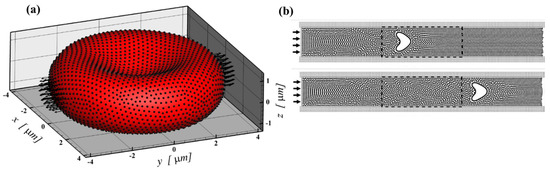 For instance, it is easy to incorporate mesoscale physics, such as interfacial breakup or coalescence. Moreover, the computational cost for simulating realistic fluid flows is reasonable compared with particle-based methods (e.g., molecular dynamics). Also, the physics associated with molecular-level interactions can be incorporated more quickly, since the Boltzmann equation is kinetic-based. Hence, the lattice Boltzmann model might be fruitfully applied to micro-scale fluid flow problems to some extents. Using Lagrange multiplier as a coupling term for fluid–solid interactions in LBM corresponds to calculating the displacements of the solid particles implicitly, which is proven to be more precise and accurate compared to immersed boundary method, which makes it a favorable method in the modeling of RBC deformation modeling. Moreover, this method offers other advantages over other conventional CFD methods for simulation of particle suspension such as the possibility of deriving different simplified local particle–fluid interaction rules because of its direct connection to molecular mechanics [84].