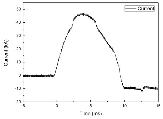 - Kim, S.H.; An, S.; Lee, B.; Lee, Y.H.; Yang, K.S. Modeling and circuit analysis of an electromagnetic launcher system for transient current waveforms. In Proceedings of the 2014 17th International Symposium on Electromagnetic Launch Technology, San Diego, CA, USA, 7–11 July 2014. [Google Scholar]