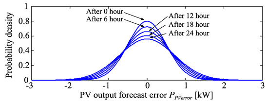 Forecast error probability distribution for photovoltaic (PV) output power.