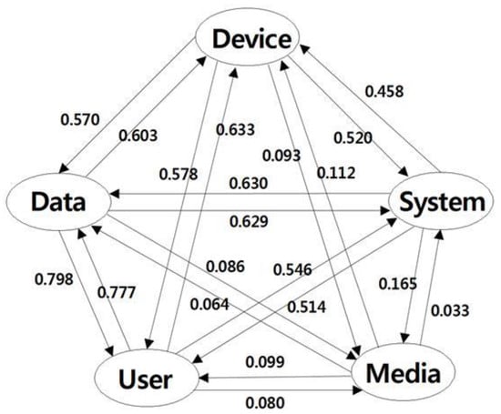 This paper is worthy of study from two perspectives: academic and practical. From the first academic point of view, our study presented a statistical analysis method for patent keyword analysis considering time. Next, this paper contributes to the technology management such as research and development planning, technology marketing, new product development, etc. from a practical point of view. For example, Figure 6 in our experimental results shows that Apple’s device technology is affected by the detailed technologies of data, user, media, and system. In particular, it can be seen that data and user technologies have more impact on device technology than do media and system technologies. This is because the weight values of data and user are 0.603 and 0.633, respectively, which are relatively larger than the weight values of 0.112 and 0.458 of the media and the system. The other relationships in Figure 6 can also be interpreted in this way. In our future study, we will develop more advanced statistical models that can use more keywords using various copula analyses, generalized linear models, and other integer valued time series models.