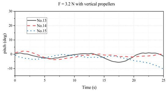 The pitch angle of horizontal motion experiments when F is 3.2 N with vertical propellers.