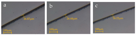 Figure 2 is the OM results of the scratch test. The composite without catalyst was added as the contrast to verify the repair effect to scratch damage more intuitively. The scratch could cause physical structural damage to epoxy resin insulating material. And the scratch width in pure epoxy resin had no obvious change after heating. The results indicate that the original epoxy resin insulating material does not have any self-healing ability to physical damage. Moreover, the influence of heating factor on the physical damage (such as scratch) in epoxy resin material is very small, which can be ignored.