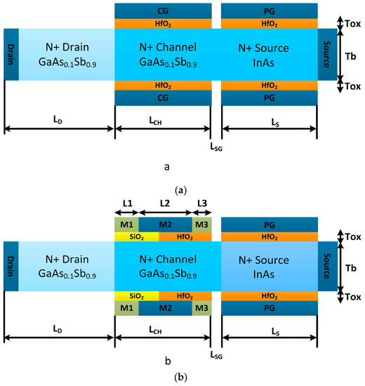 - Kumar, M.J.; Janardhanan, S. Doping-Less Tunnel Field Effect Transistor: Design and Investigation. IEEE Trans. Electron. Devices 2013, 60, 3285–3290. [Google Scholar] [CrossRef]