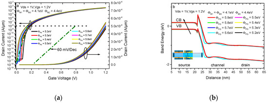 3.4. Effect of Device Parameters on the Transfer Characteristics