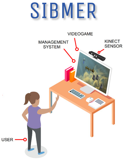 SIBMER consists of three main components: (a) a video game; (b) an administrative software; and (c) a Kinect sensor. This sensor detects the user and creates a 3D skeleton, which is sent to the video game to map the movements of the hand to the movements of the ship (Figure 2).