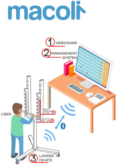 Macoli consists of three main components: a video game-software (Figure 4-1), a management system for users and administrative data-software (Figure 4-2) and a technological device in the form of wall-bars or gymnastics ladder-hardware (Figure 4-3).