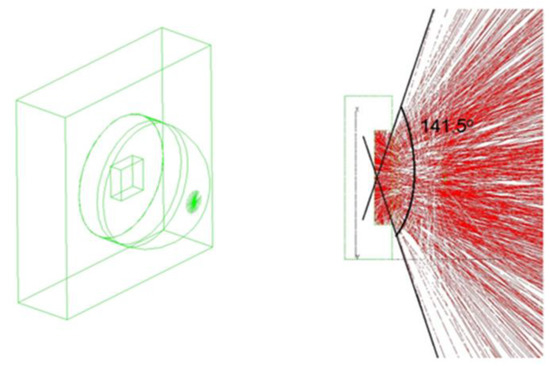 We first confirm the LED lamp scattering angle, and the simulation results in Figure 3 shows this is 141.5 °C, while the actual product specification is 140 °C, as shown in Table 2.