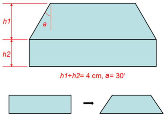 As the design variables, S1 and S2, do not significantly improve the uniformity, this study changes the reflective cover design. The original reflective cover is a rectangle, and this is then changed to the type shown in Figure 8 to focus the light source, and three designs are simulated: