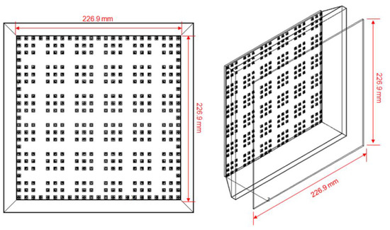 The rapid development of light-emitting diodes (LEDs) over the has surpassed the characteristics of incandescent lamps in luminous efficiency, durability, reliability, safety, and power requirements [1,2]. Although Current high-power LEDs produce up to 120 lm per device, several independent LEDs must be installed on the panel to achieve the actual power. However, in many lighting applications, a uniform illumination distribution is desired, which is affected by the packing density and array configuration of the LEDs [3]. The use of the superposition of illuminance to determine the required interval of the LED array is a good method for designing a lighting system [4,5]. When the panel–target distance is not much longer than the panel size, The illumination non-homogeneity is conspicuous, for example, LED systems that produce directional lighting, such as display lighting [6,7], machine vision [8,9], and microscopy [10].