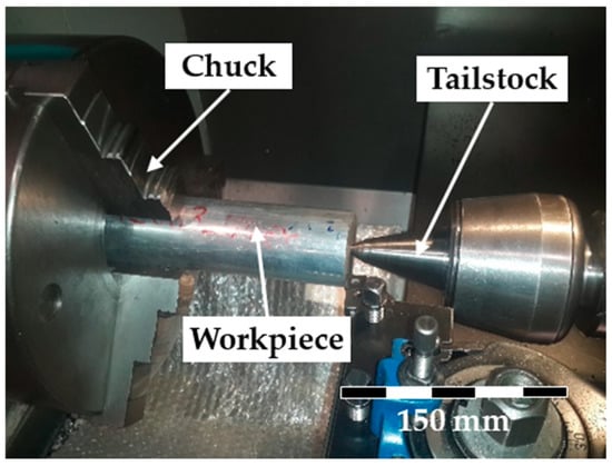 Practical machining tests were conducted to compare the performance of the tool-insert with its original geometry (no chip breaker) and with the one including the chip breaker. The test consisted in the longitudinal turning of an aluminum 6082 workpiece with the following cutting conditions: Ap = 1.0 mm, f = 0.10 mm and a Vc = 100 m/min, see Figure 11.