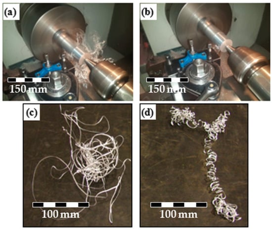 An appropriately controlled machining process enables high productivity and minimizes costs of energy, materials, and tools [11]. This necessitates restrictive cutting conditions to be identified and rigorously applied [11,12]. In addition, an appropriate design of a cutting tool is essential to achieve an effective chipping operation and to extend tool life [13,14]. However, chip evacuation is a recurrent problem that needs addressing with machining ductile and soft materials, especially with the formation of continuous chips [10,15,16]. Discontinuous and fragmented chips are easier to control as continuous chips can wrap around the workpiece and/or the cutting tool and clog the cutting zone, which negatively affects the cutting process. Such chips can scratch the newly machined surface, detract from its quality and increase tool wear/breakage thereby decreasing tool life [17,18]. This results in a higher number of production stops and, therefore, in a dramatic increase of production time. Thus, the chip formation process and chip control using combined cryogenic and minimum quantity lubrication [19,20], applying cryogenic lubrication [7,21], high pressure coolant [2,11] ultrasonic-assisted vibration [15,17], optimization of the processing parameters [10,22,23,24], and chip breakers [10,14,16] as well as their limitations [25], have been widely studied, both experimentally and by means of simulation.