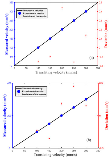 Results of velocity measurement. (a) The target is leaving the collimator; (b) the target is approaching the collimator.