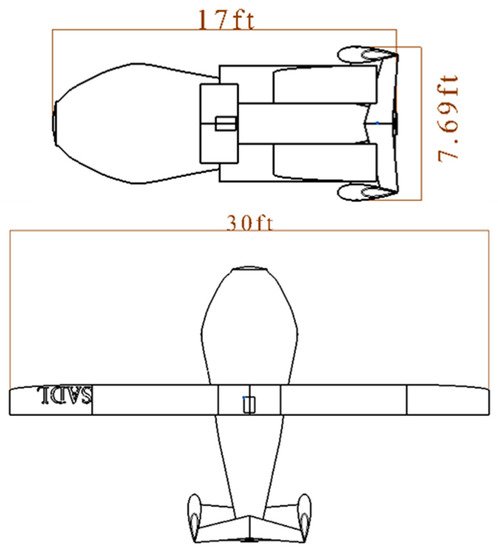 The wing span must be considered as one of design variables with length constraint in a fixed-wing PAV design, as the vehicle should be able either to take off from or land on a road if necessary. In this study, it was assumed that PAVs take off from and land on a four-lane road. In general, a fixed-wing PAV requires a wing-folding mechanism. The wing root chord was determined by considering the minimum width of the vehicle, because the wing root chord has the greatest impact on the vehicle’s width when the vehicle is in the driving mode [18].