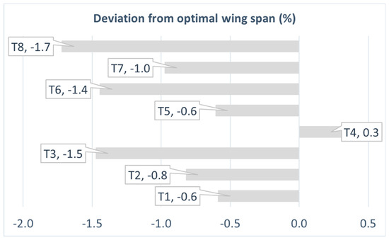 Technology sensitivity analysis: deviation from optimal wing span target value.