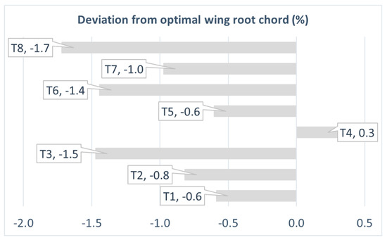 Technology sensitivity analysis: deviation from optimal wing root chord target value.