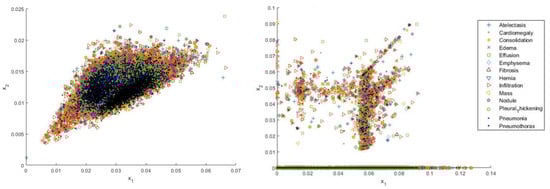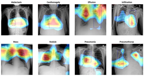 - Wang, X.; Peng, Y.; Lu, L.; Lu, Z.; Bagheri, M.; Summers, R.M. Chest X-ray8: Hospital-scale chest X-ray database and benchmarks on weakly-supervised classification and localization of common thorax diseases. In Proceedings of the IEEE Conference on Computer Vision and Pattern Recognition, Honolulu, HI, USA, 21–26 July 2017. [Google Scholar]