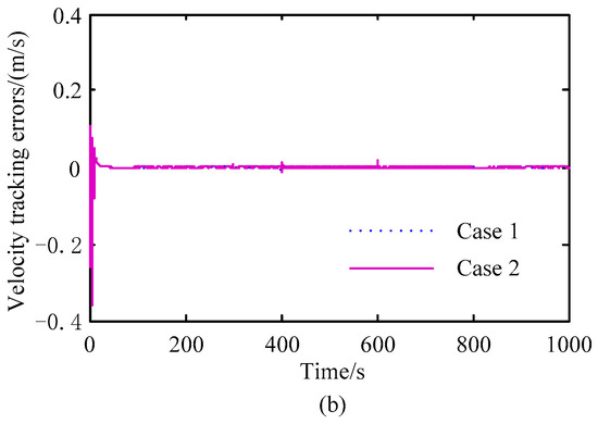 Given that . Using the same design parameters and initial values, the position tracking error and velocity tracking error are shown in Figure 8, which illustrates the proposed controller has strong robustness to the lumped uncertainty.