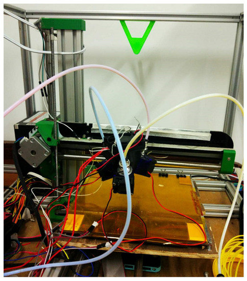 - Ali, M.H.; Mir-Nasiri, N.; Ko, W.L. Multi-nozzle extrusion system for 3D printer and its control mechanism. Int. J. Adv. Manuf. Technol. 2016, 86, 999–1010. [Google Scholar] [CrossRef]