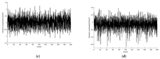 Vibration signals of four measuring points. (a) measuring point 1, (b) measuring point 2, (c) measuring point 3, and (d) measuring point 4.