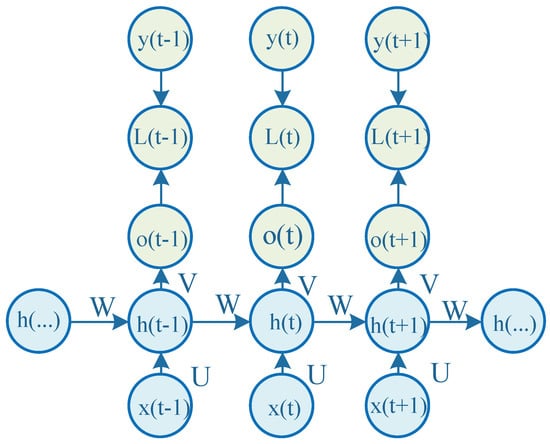 A recurrent neural network (RNN) is a natural feed-forward neural network that has been applied successfully owing to its capacity to model highly non-linear data with a sequential nature [49]. A standard RNN is composed of a series of recurrent units to cope with time series problems. The unfold overview of RNN cell architecture is shown in Figure 4. It’s different from the general fully connected neural network, as the output at the current time is also the input of the next time.