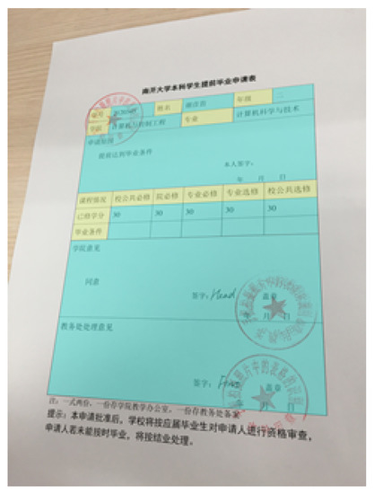 In addition, a handwritten signature belongs to the category of character interference, so it can be removed like other characters during recognition using the above five techniques. As Figure 5f shows, the handwritten signature is removed completely.