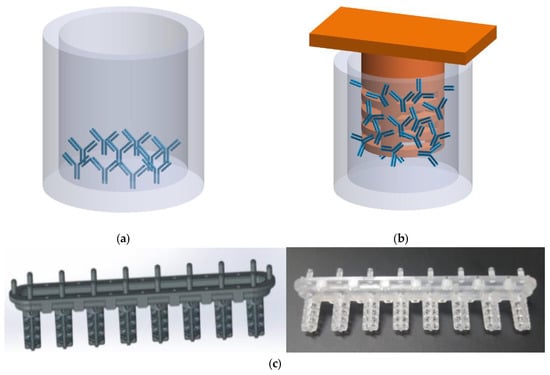 The enzyme-linked immunosorbent assay (ELISA) is a widely used technique that utilizes an enzyme linked antibody and substrate to identify the target antigens. Solid supports such as membrane and polystyrene are commonly available in biomedical applications. There are two types of interest for membrane design, namely inorganic and organic membranes. Inorganic membranes are common supports that could increase the antigen–antibody reactions by increasing the surface area and performing a capillary action. Organic membranes have generally been used and applied commercially for biosensors. The commonly available membrane-based biosensor systems include a filtration function such as nitrocellulose [], nanofiber, cellulose [], and nylon []. The other substrates based on organic membranes include polymer components, polyethersulfone [], polydimethylsiloxane (PDMS) [], polypropylene, polylactic acid (PLA), and polycarbonate []. Polymer substrates are the type of immobilization column generally used for the ELISA system as they provide a low fabrication process cost and ease of use.