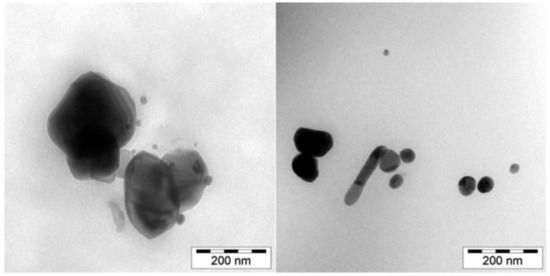 Nanosized TiN is used as a so-called reheat additive in the production of bottles made of polyethylene terephthalate (PET). In our previous study the non-migratability of TiN-NPs from a LDPE-based nanocomposite was already demonstrated. From that study the nanocomposites were used to examine a release of TiN-NPs after mechanical stressing of the test samples. Due to the elemental composition of TiN element specific techniques like (ICP-MS) can be used to analyze for titanium very specifically at low detection limits. Transmission electron microscopy (TEM) images (Figure 2) of the TiN-nanocomposite showed a homogeneous distribution of NPs in the LDPE matrix. Thereby, the aggregates consist of almost spherical primary particles with an average size of 20 nm that are fused to irregular formed aggregates of an average size of 100–500 nm.