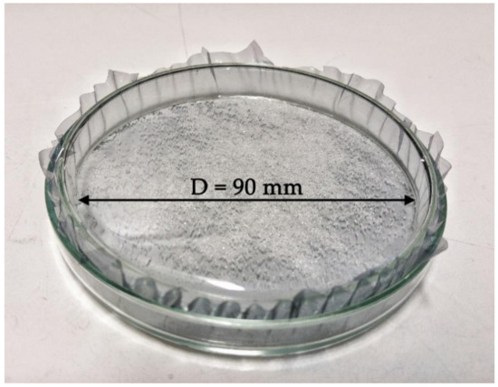 Nanocomposites were clamped in glass Petri dishes and loaded with 1.0 g of an abrasive substance (i.e., salt or quartz sand). Depending on the chemical nature of the nanomaterial and the subsequent analytical technique used either quartz sand (Büchi Labortechnik GmbH, Germany) or salt (sodium chloride p.A., Sigma Aldrich Chemie GmbH, Germany) were used as a dry abrasive simulant. The cells were composed of a smaller petri dish with an inner diameter of 90 mm and a larger petri dish with an inner diameter of 95 mm. In a first step, the smaller cell was loaded with the dry food simulant and the nanocomposite was loosely placed on the dish. In a second step the larger cell was put over the smaller cell with the nanocomposite film in between. This way the nanocomposite was clamped in the cells with an even surface (Figure 4). Furthermore, the nanocomposite itself acted as a sealant between the cells to prevent loss of dry simulant and abrasion. By turning the cells upside down (small cell on top) the dry food simulant was then brought in contact with the nanocomposite. The surface area of the nanocomposite that was in contact with the dry food simulant was given by the inner diameter of the smaller cell (90 mm), which was 0.64 dm2.