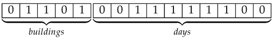 Example of an individual encoding a biclusters containing three buildings and six consecutive days.