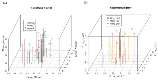 Figure 11a, no matter which axis the robot manipulator moved along, the positioning error was lower than 1 mm. The estimation errors of the rotation matrix