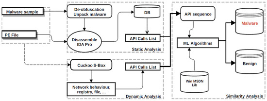 - Sami, A.; Yadegari, B.; Rahimi, H.; Peiravian, N.; Hashemi, S.; Hamze, A. Malware detection based on mining API calls. In Proceedings of the 25th Annual ACM Symposium on Applied Computing (SAC’10), Sierre, Switzerland, 22–26 March 2010; pp. 1020–1025. [Google Scholar]